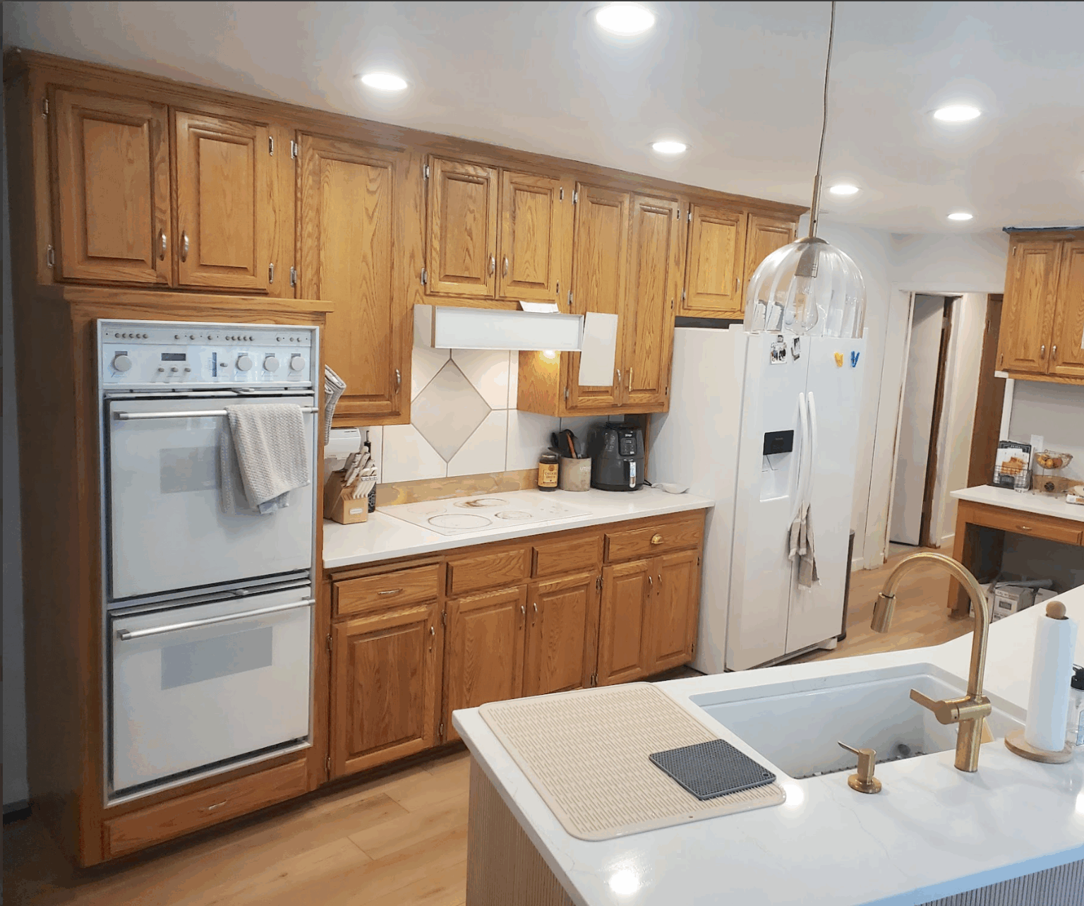 Golden red oak doors and vintage appliances…..