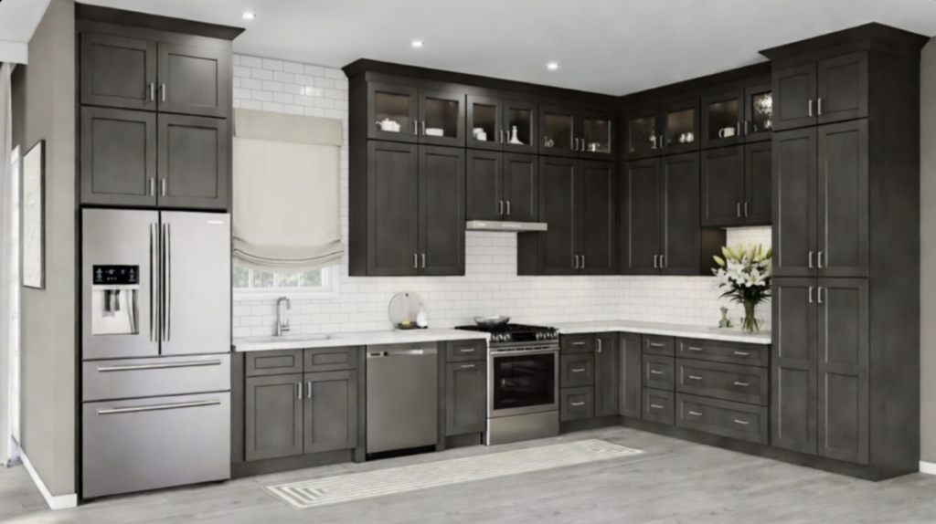 However since we are a custom cabinet shop; we can do semi-custom as well and add/edit to these cabinets, if desired. So if there is anything you need in a custom size or style, we can match the finish & profile of the stock line making the cabinets semi-custom. This is a good blend of saving cost, while still getting everything “just right” for your space.